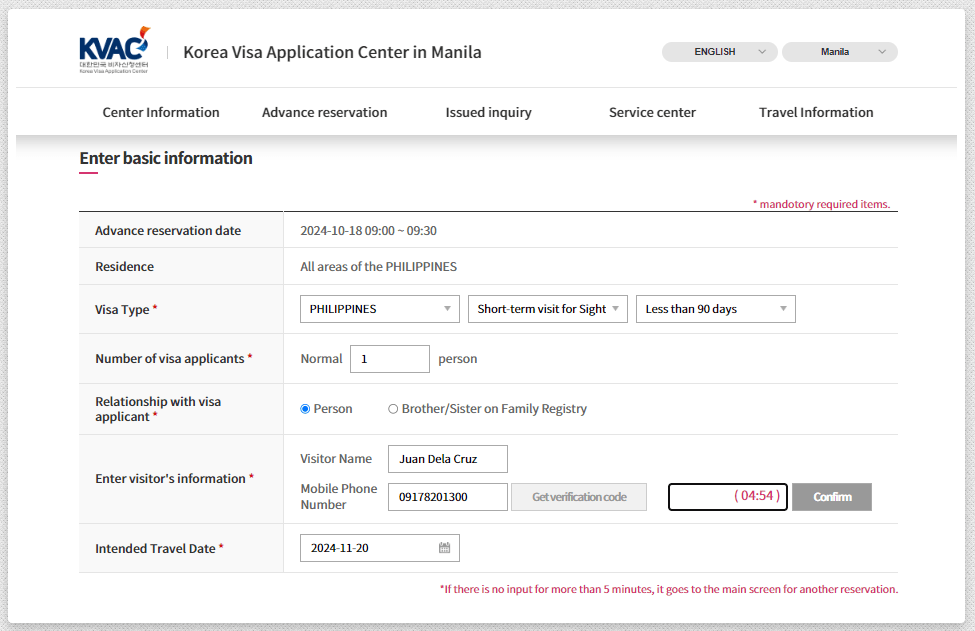 1. Access the Korean Visa Reservation Website