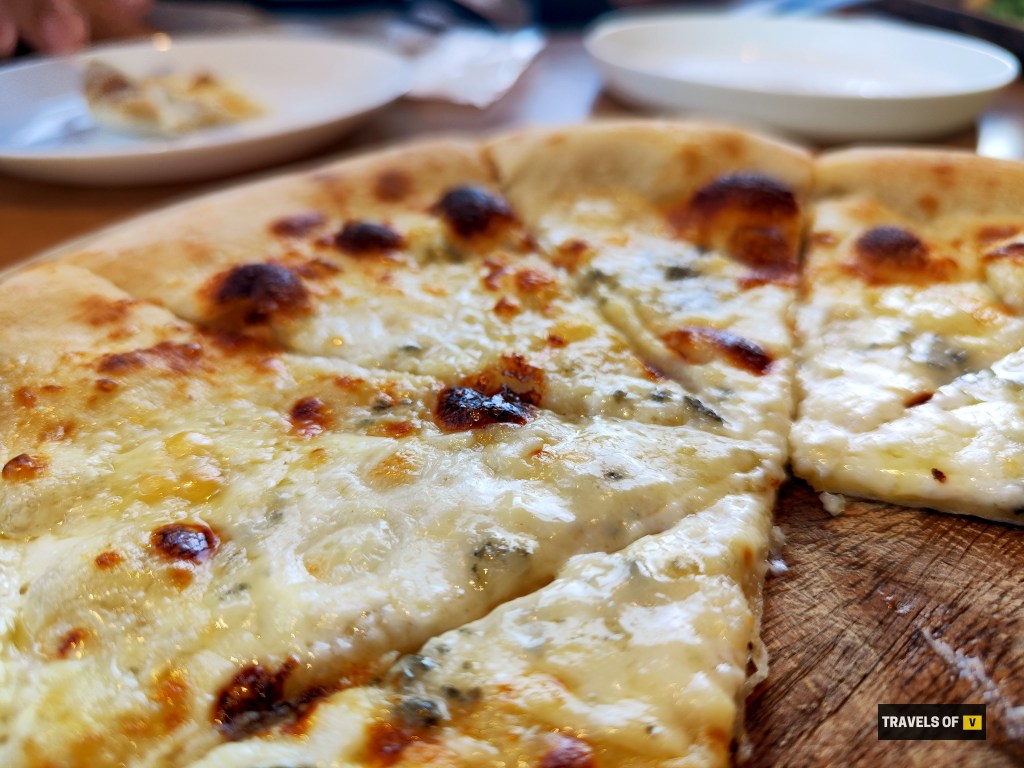 Cheese Pizza with Honey Option (around ¥1,300): I ordered a cheesy pizza that came with honey on the side for drizzling. The honey added a unique sweetness to the savory cheese, which was surprisingly good! This was my first time to taste a pizza like this.