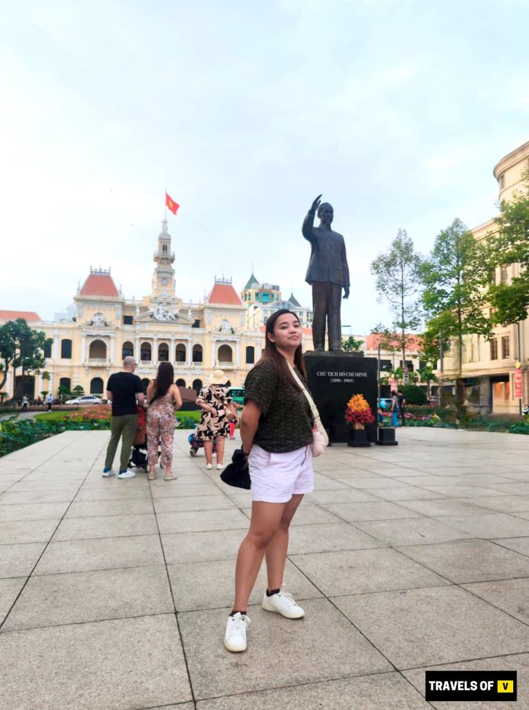 Ho Chi Minh Statue. It’s a figure of the revolutionary leader and a key symbol of the city. The building behind the statue of Ho Chi Minh is the People’s Committee Building (also known as the Saigon City Hall). It is a French colonial-era building located in the heart of Ho Chi Minh City, near the famous Nguyen Hue Street.